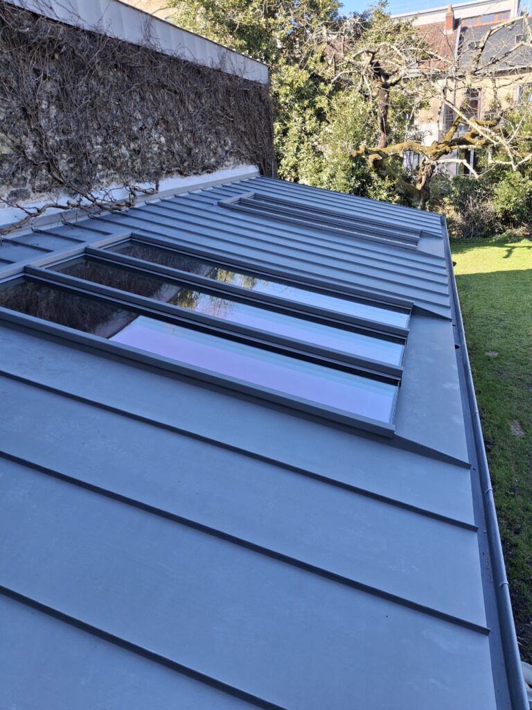 Nos réalisations Nos réalisations Un projet en tête ? Discutons-en ! 02 51 89 44 44 Nos réalisations Entretien de toiture Photovoltaïque Couverture Bardage Toiture plate végétalisée avec membrane bitume, performance et écologie à Sucé-sur-Erdre Maison moderne équipée de panneaux photovoltaïques en toiture à Carquefou Toiture plate étanchée par membrane PVC, solution moderne et durable à Nantes Vue en toiture des panneaux photovoltaïques installés à Saint-Jean-de-Monts, au cœur de la nature Production d’énergie solaire grâce à des panneaux photovoltaïques sur maison individuelle à Nantes Rénovation d’une toiture en tuiles à Thouaré-sur-Loire, alliance de solidité et d’esthétique Travaux de couverture en tuiles avec isolation sarking à Nantes, confort et performance énergétique garantis Toiture en zinc avec verrière intégrée à Nantes, modernité et luminosité au cœur de la maison Installation de panneaux photovoltaïques intégrés sur toiture en tuiles à Carquefou Toiture en tuiles rouges apportant charme et durabilité à une maison familiale Façade sublimée par un bardage alu moderne à Tréillières Maison rénovée avec couverture en ardoise, isolation sarking et lucarne en zinc à Carquefou Façade moderne en bardage aluminium à joints creux, élégance et durabilité à Carquefou Maison contemporaine à Saint-Jean-de-Monts équipée de panneaux photovoltaïques performants Maison familiale revalorisée par une toiture en tuiles rouges traditionnelles à Carquefou Bardage en zinc raffiné, alliance de modernité et de solidité à Saint-Mars-du-Désert Maison contemporaine habillée d’un bardage zinc élégant à La Chapelle-sur-Erdre Maison traditionnelle revalorisée par une toiture en ardoise naturelle Maison contemporaine à Saint-Sébastien-sur-Loire avec bardage et couverture en zinc haut de gamme Alliance moderne d’une toiture en tuiles et d’un bardage alu contemporain à Orvault Maison rénovée avec toiture en tuiles anthracite, modernité et élégance en Loire-Atlantique Extension habillée d’une couverture en zinc à Carquefou, lignes modernes et durables Maison contemporaine habillée d’un bardage alu à joints debout à Saint-Sébastien-sur-Loire Bardage en zinc contemporain donnant du caractère et de la modernité à un magasin Maison contemporaine au cœur de Nantes avec toiture en zinc gris Extension habillée d’un bandeau alu au design contemporain, signée OTBE Maison contemporaine avec toiture et bardage zinc gris élégants à Carquefou Grand bâtiment couvert en tôle ondulée acier, robustesse et performance à Saint-Étienne-de-Montluc Maison contemporaine avec toiture en zinc à joints debout, sobre et élégante Toiture en tuiles traditionnelles réalisée à Carquefou, charme et authenticité préservés Menu Nos services Couverture Bardage Étanchéité Entretien toiture Photovoltaïque Nos réalisations L’entreprise Conseils & actualités Contact